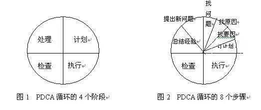 PDCA循環(huán)應用了科學的統計觀念和處理方法。作為(wéi)推動工作、發現問題和解決問題的(de)有效工具,典型的(de)模式被稱為“四個階段”、“八個步驟”。