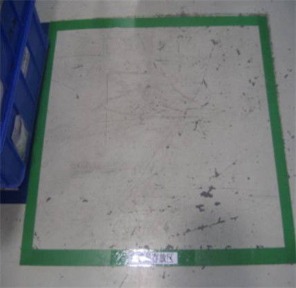 對(duì)於“不(bú)良品”,“廢棄物” 以及“垃圾”等,使用紅色膠帶將四周(zhōu)進行標(biāo)示,並用與膠帶一(yī)樣寬的白色標(biāo)簽(qiān)標示,注明具體的放置物品。
