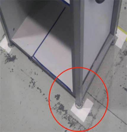 對於(yú)固定物品(例如,工作桌、櫥(chú)櫃等)的放置位置,使用白色膠帶進行標示,隻用直角將固定物品的四個(gè)角標示即可。