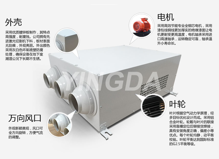 1.2.YDF型誘導(dǎo)風機是一(yī)種自帶噴嘴型誘導風機,可(kě)由多台誘導風(fēng)機組成(chéng)一個誘導係(xì)統。