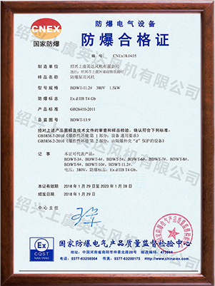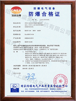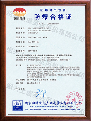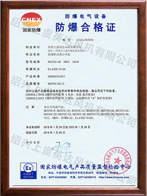 為(wéi)適應防爆環境需要(yào),風(fēng)機可做成防爆風機,防爆等級為EXdⅡBT4,適用於易燃、易爆氣體的場(chǎng)所。整機通過國家防爆認證。