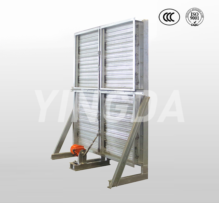 單體風閥具有耐高溫和低泄漏量(<0.5%)的特點有效通風麵積為80%以上組合方便靈活,可適應不(bú)同通風截麵的需要采用外(內)連杆傳動機構,精確(què)調整葉(yè)片開度(dù)連杆間隙可調,單體風閥開閉一致性好