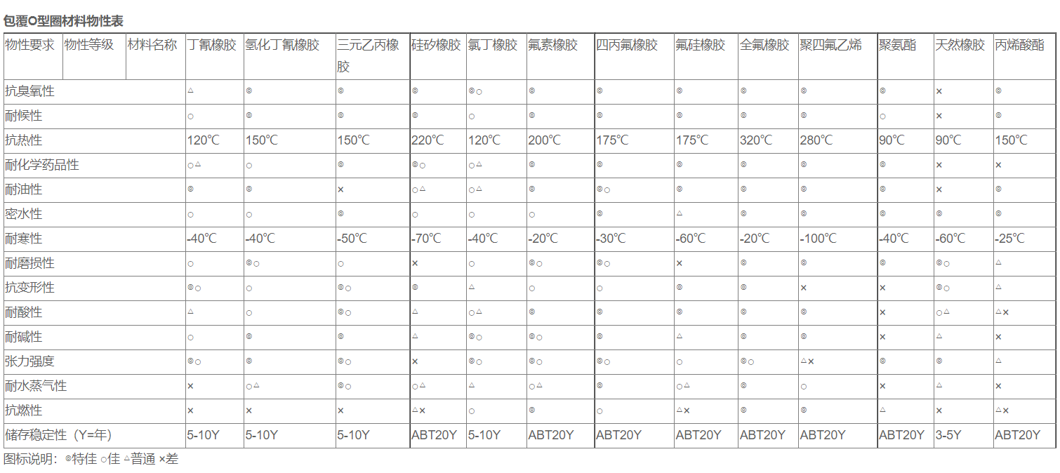 不同材料的包覆O型圈硬度(dù)平均如下: