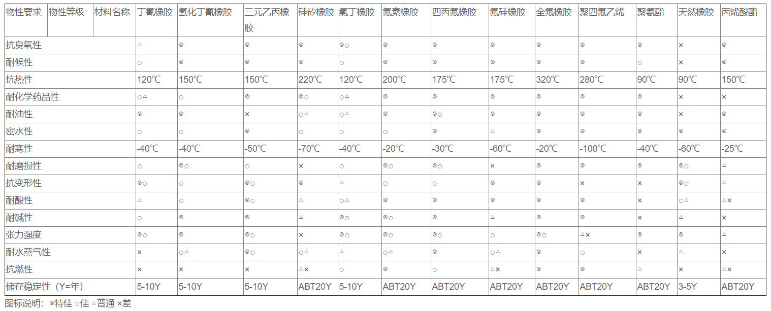 • 氫化丁晴(HNBR):耐溫-40~150℃、耐油(yóu),耐磨,耐堿、壓縮永久變形佳、抗臭氧(yǎng)。