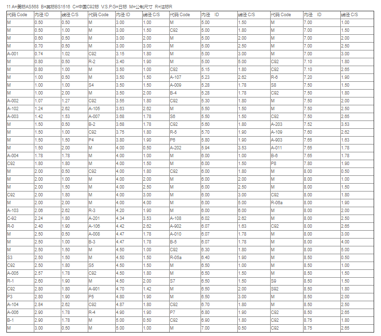 M=美(měi)標、V,S,P,G=日標、B=英標、R=法標、C92=國標、M=公製尺(chǐ)寸
