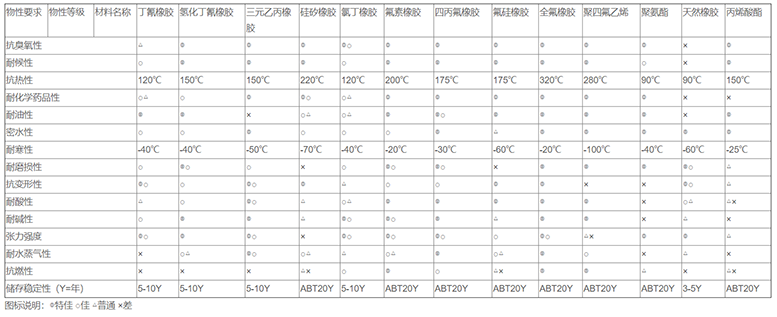 • 全氟橡(xiàng)膠(FFKM):耐溫-20~320℃、耐腐蝕,耐廣泛化學(xué)性介質,特別是在高(gāo)溫水蒸汽和(hé)氨氣環(huán)境中,保持橡膠的彈性,最高可在320 ℃高溫下保持(chí)密封性能。
